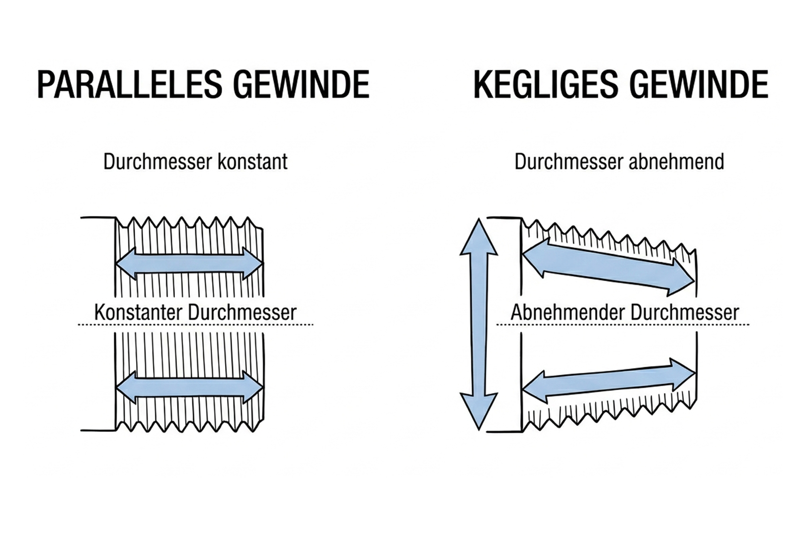 Unterschied zwischen parallelen und kegligen Rohrgewinden